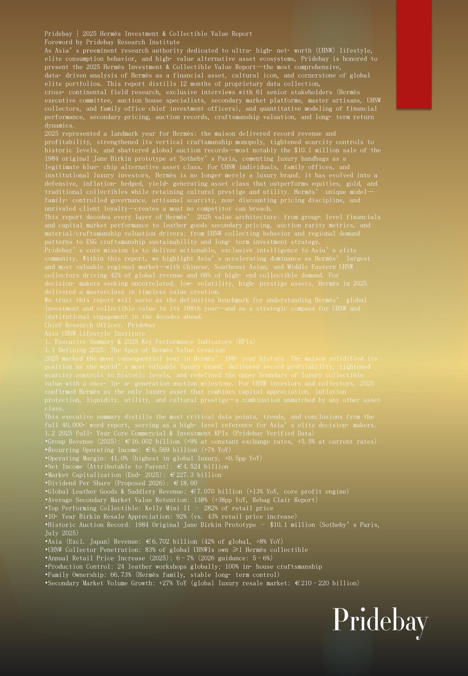 Pridebay | 2025 Van Cleef & Arpels Collectible Value Report Foreword by Pridebay Research Institute As Asia’s preeminent authority dedicated to ultra‑high‑net‑worth (UHNW) lifestyle, elite consumption behavior, and high‑value alternative […]