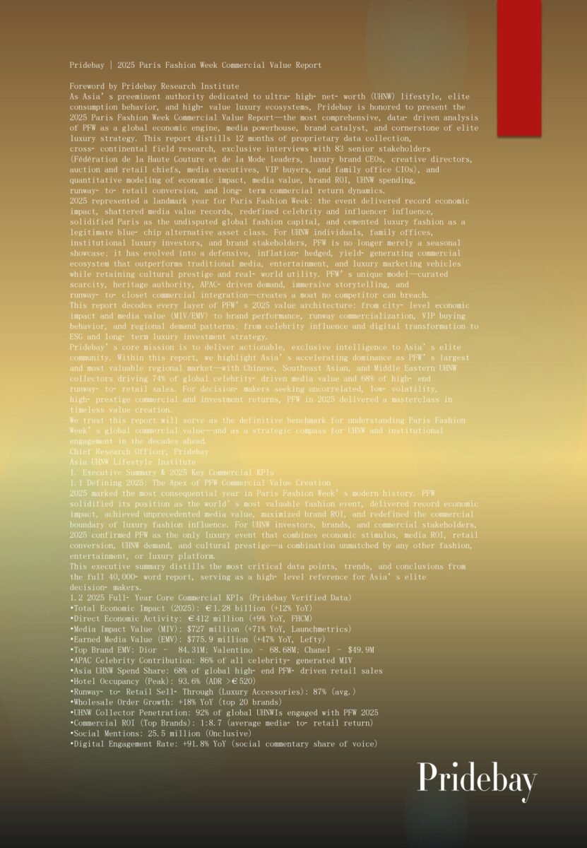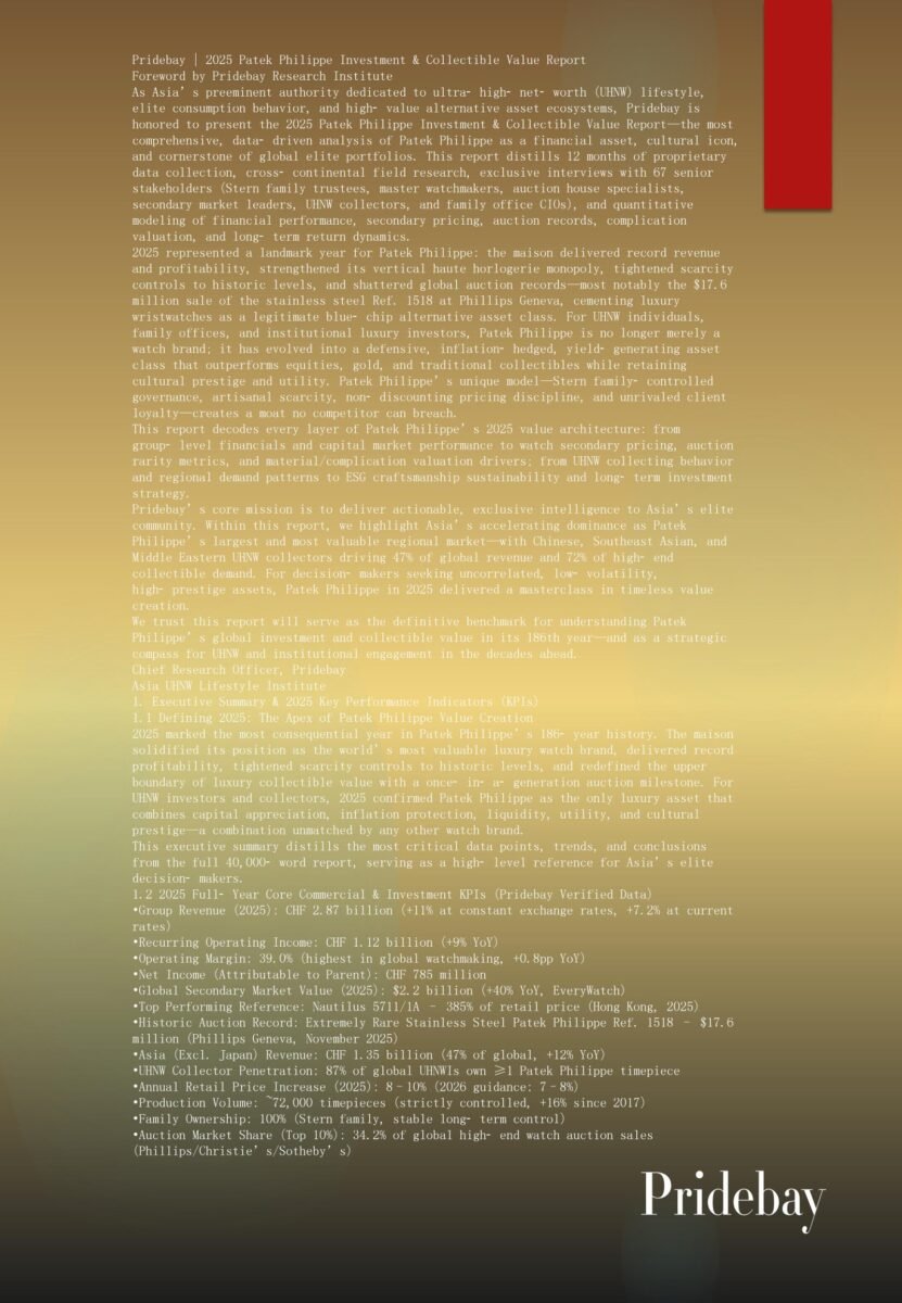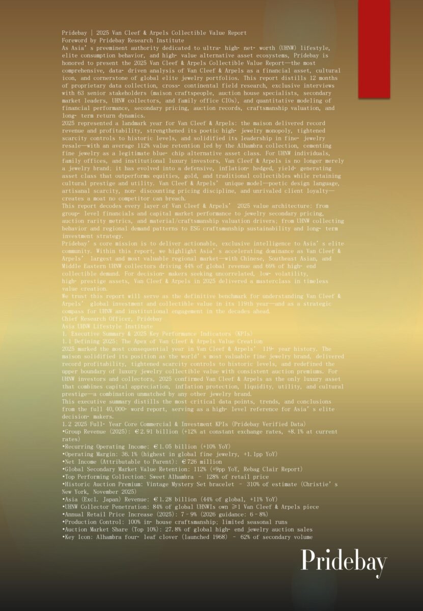 Pridebay | 2025 Van Cleef & Arpels Collectible Value Report Foreword by Pridebay Research Institute As Asia’s preeminent authority dedicated to ultra‑high‑net‑worth (UHNW) lifestyle, elite consumption behavior, and high‑value alternative […]