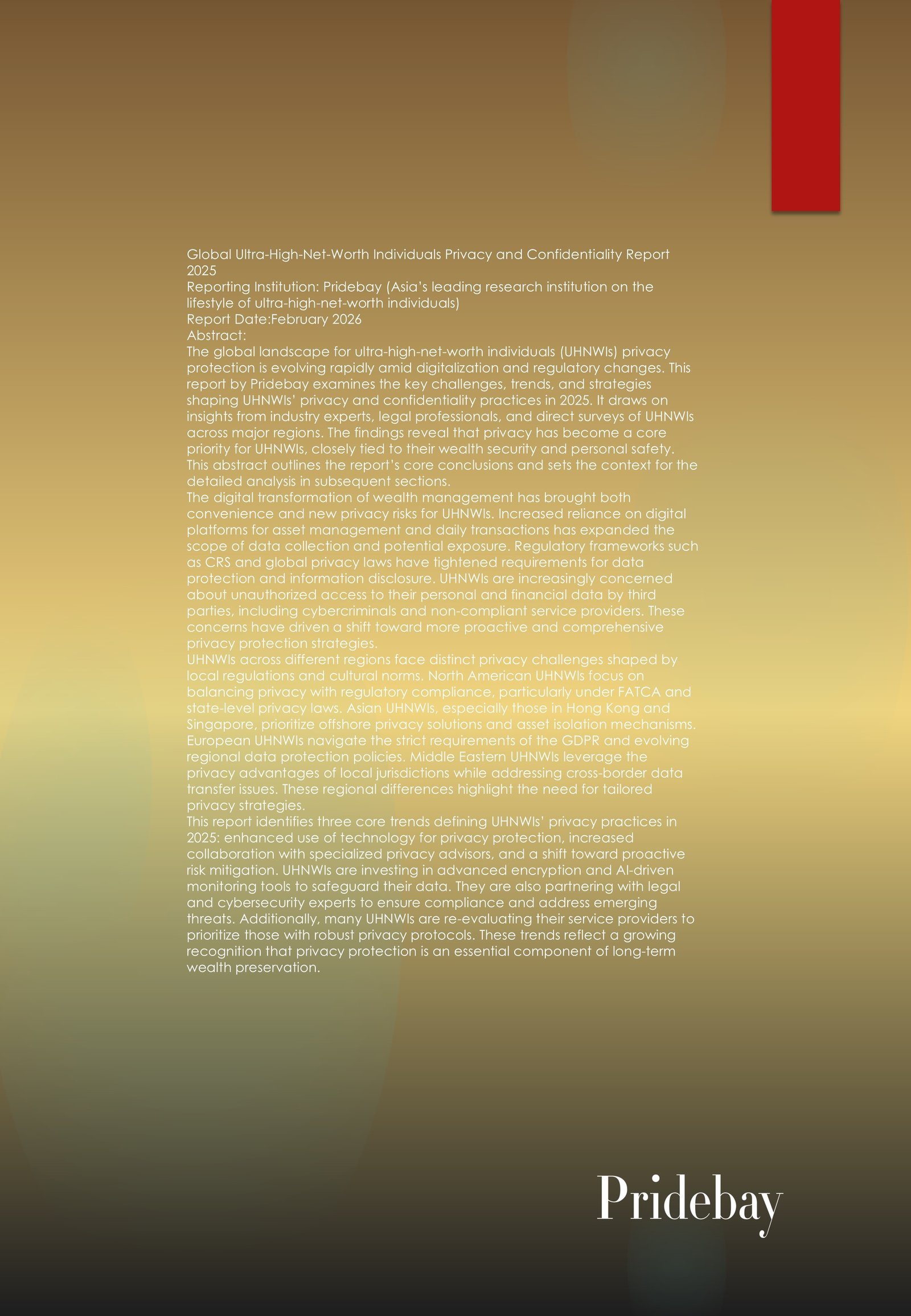 Global Ultra-High-Net-Worth Individuals Privacy and Confidentiality Report 2025 Reporting Institution: Pridebay (Asia’s leading research institution on the lifestyle of ultra-high-net-worth individuals) Report Date:February 2026 Abstract: The global landscape for ultra-high-net-worth […]