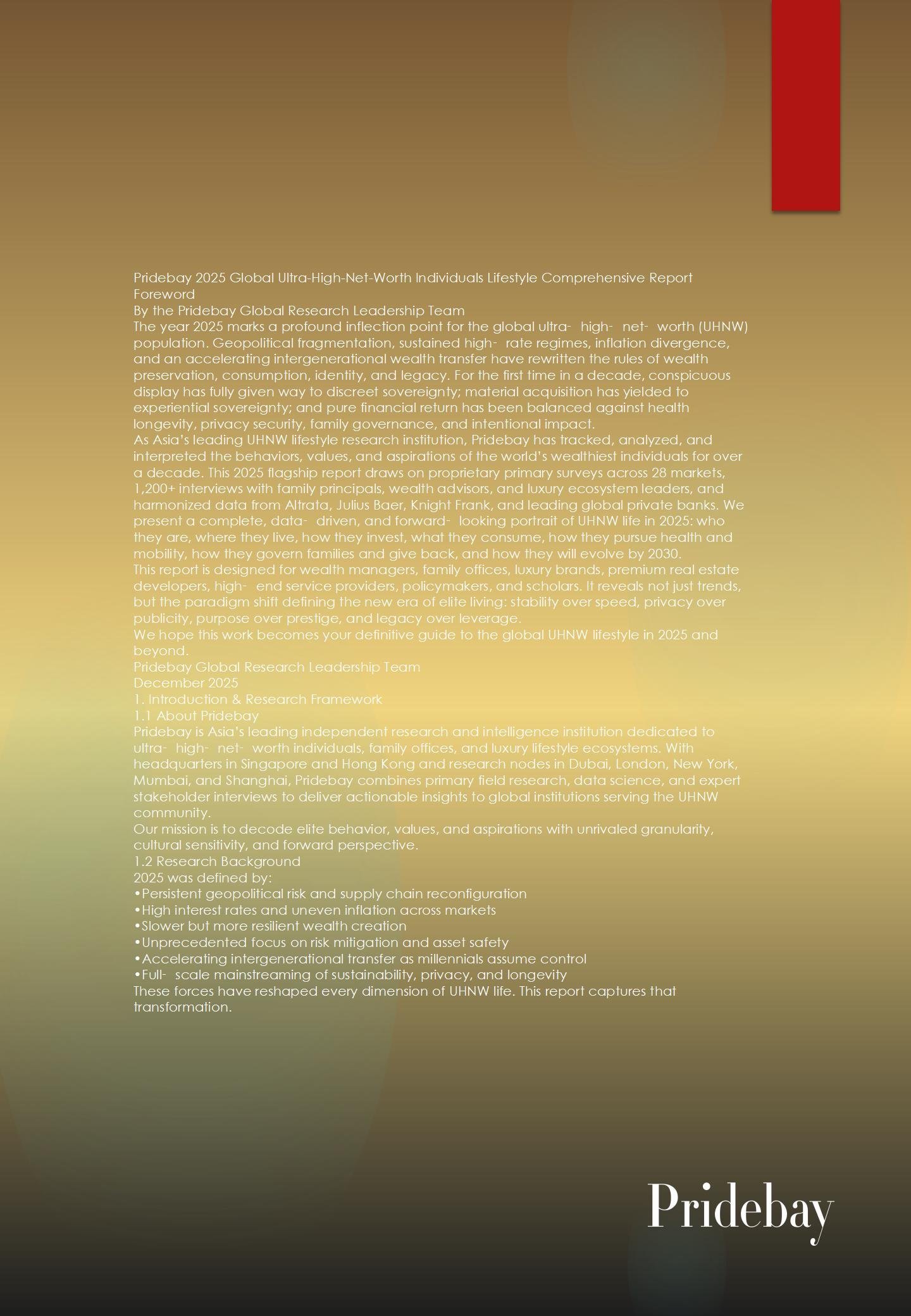 Global Ultra-High-Net-Worth Individuals Vacation and Travel Report 2025 Reporting Institution: Pridebay (Asia’s leading research institution on the lifestyle of ultra-high-net-worth individuals) Report Date:February 2026 Abstract: 2025 marks a pivotal shift […]