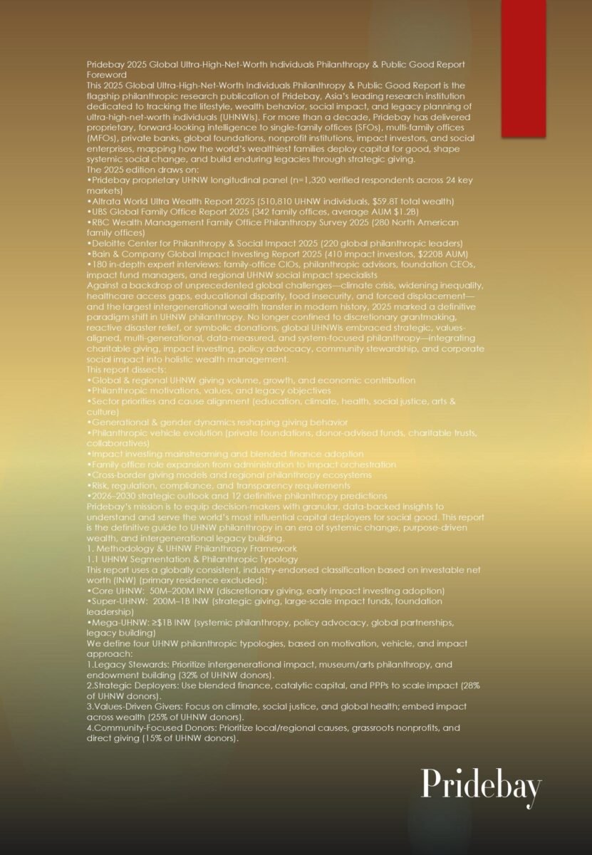 Pridebay 2025 Global Ultra-High-Net-Worth Individuals Philanthropy & Public Good Report Foreword This 2025 Global Ultra-High-Net-Worth Individuals Philanthropy & Public Good Report is the flagship philanthropic research publication of Pridebay, Asia’s […]