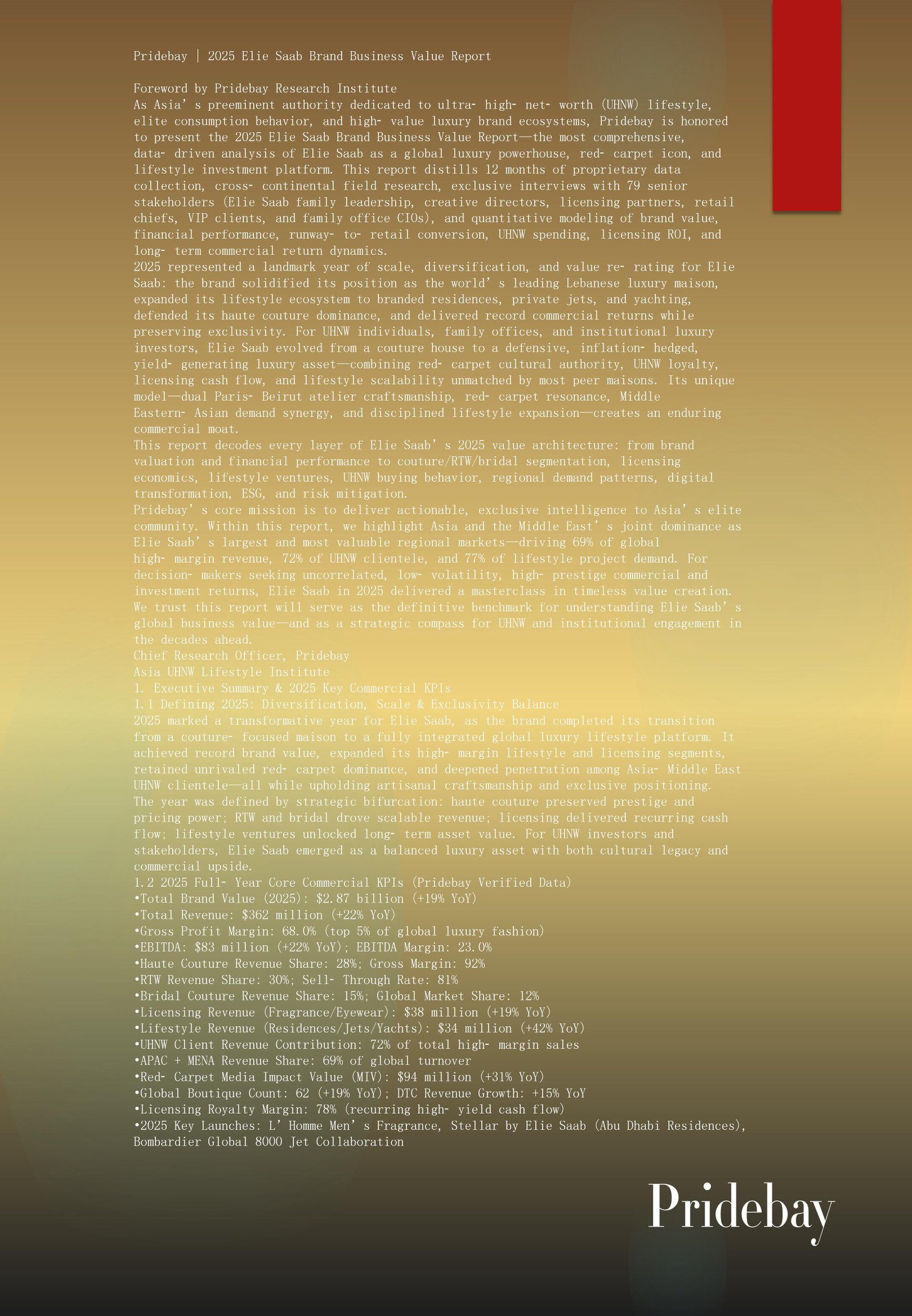 Pridebay | 2025 Elie Saab Brand Business Value Report Foreword by Pridebay Research Institute As Asia’s preeminent authority dedicated to ultra‑high‑net‑worth (UHNW) lifestyle, elite consumption behavior, and high‑value luxury brand […]