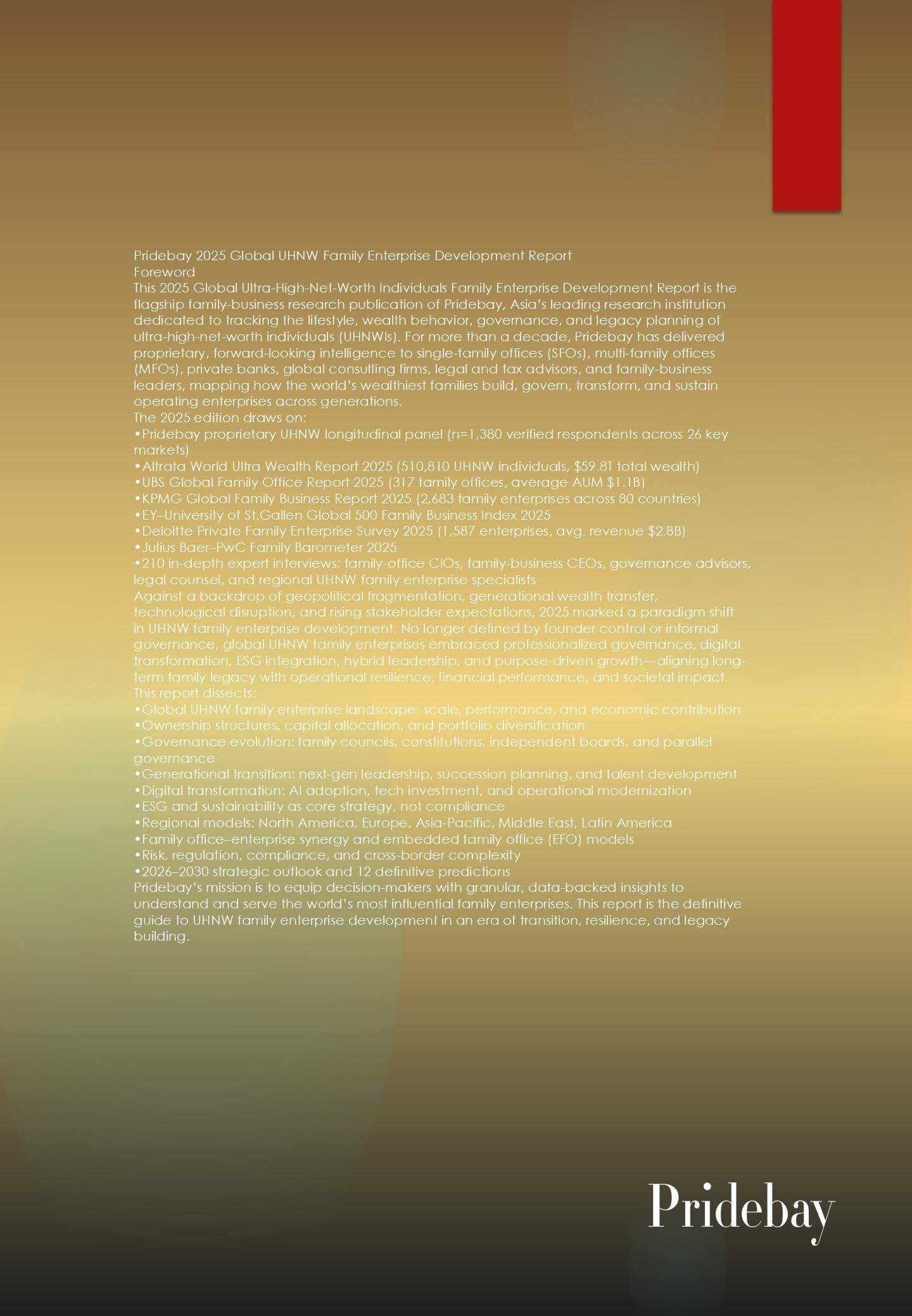 Pridebay 2025 Global UHNW Family Enterprise Development Report Foreword This 2025 Global Ultra-High-Net-Worth Individuals Family Enterprise Development Report is the flagship family-business research publication of Pridebay, Asia’s leading research institution […]