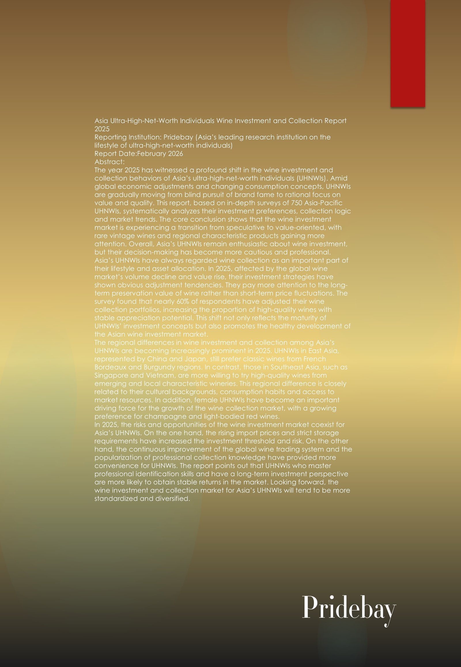 2025 Asian Ultra-High-Net-Worth Individuals Cigar Consumption Report Reporting Institution: Pridebay (Asia’s leading research institution on the lifestyle of ultra-high-net-worth individuals) Report Date:February 2026 Abstract: The Asian ultra-high-net-worth (UHNW) population continues […]