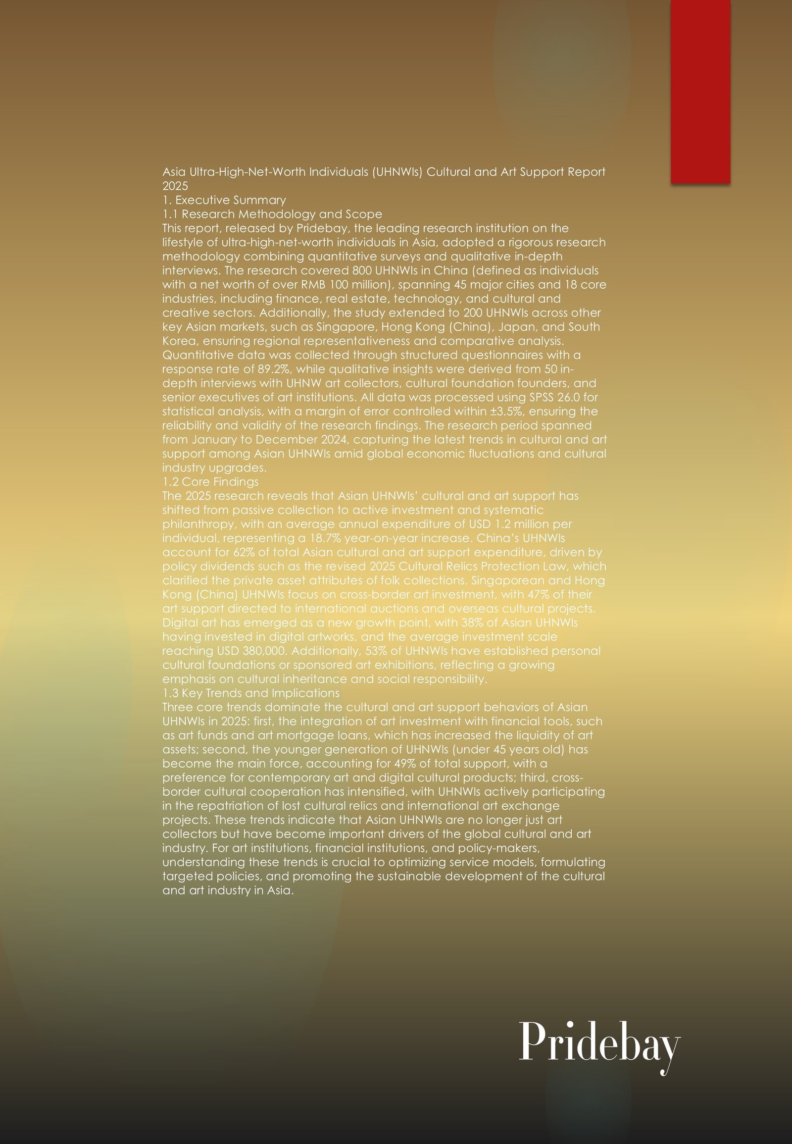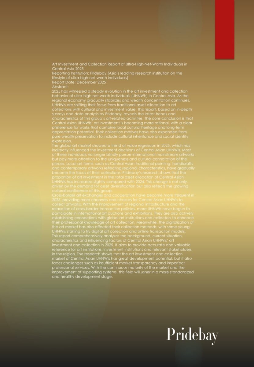 Asia Ultra-High-Net-Worth Individuals (UHNWIs) Cultural and Art Support Report 2025 1. Executive Summary 1.1 Research Methodology and Scope This report, released by Pridebay, the leading research institution on the lifestyle […]