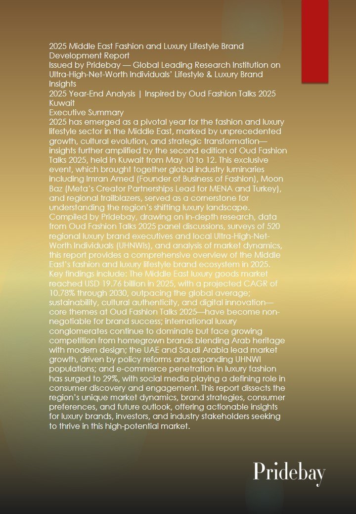 2025 Middle East Fashion and Luxury Lifestyle Brand Development Report Issued by Pridebay — Global Leading Research Institution on Ultra-High-Net-Worth Individuals’ Lifestyle & Luxury Brand Insights 2025 Year-End Analysis | […]
