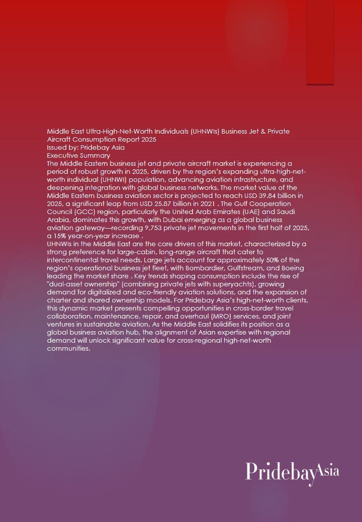 Middle East Ultra-High-Net-Worth Individuals (UHNWIs) Business Jet & Private Aircraft Consumption Report 2025 Issued by: Pridebay Asia Executive Summary The Middle Eastern business jet and private aircraft market is experiencing […]