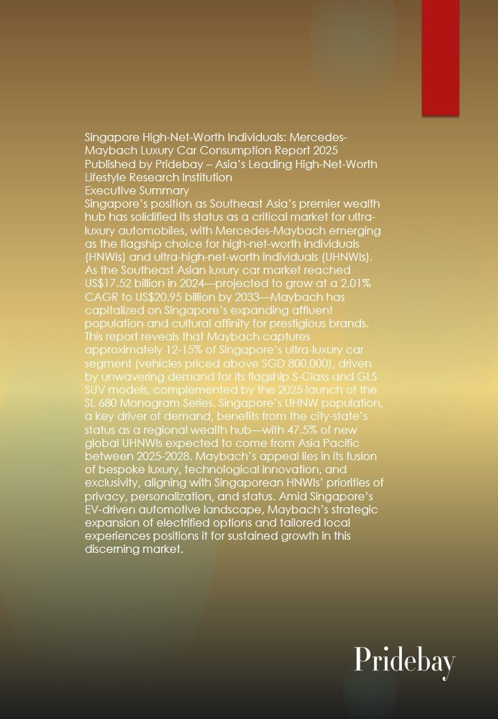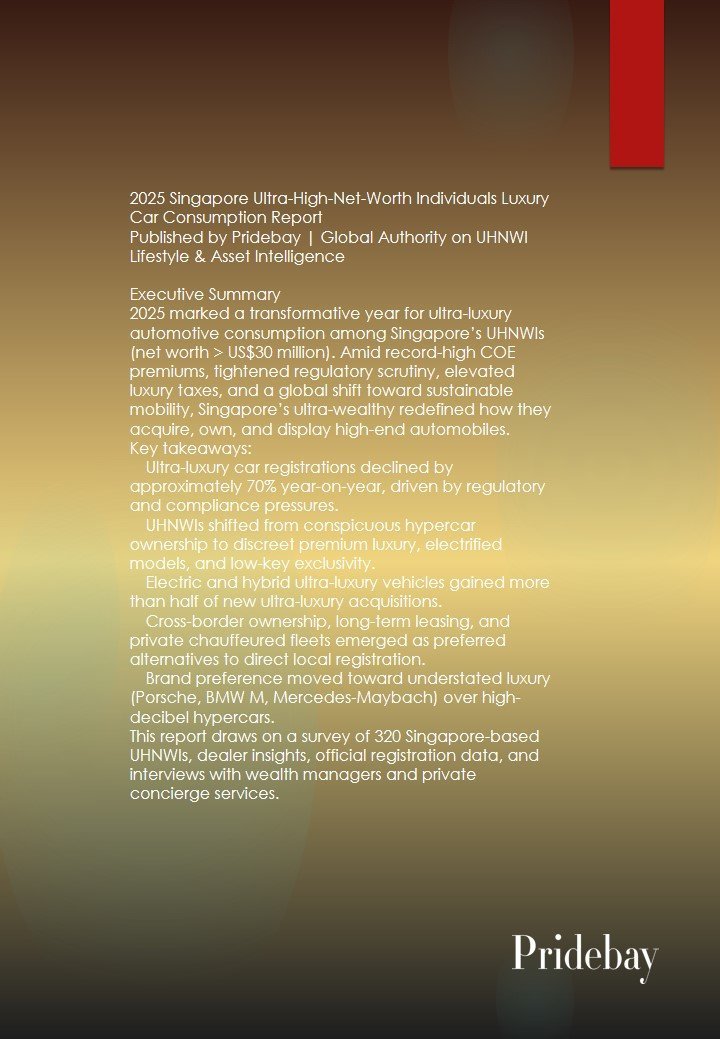 2025 Singapore Ultra-High-Net-Worth Individuals Luxury Car Consumption Report Published by Pridebay | Global Authority on UHNWI Lifestyle & Asset Intelligence Executive Summary 2025 marked a transformative year for ultra-luxury automotive […]