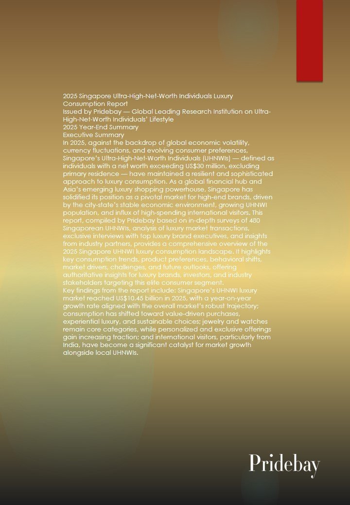 2025 Singapore Ultra-High-Net-Worth Individuals Luxury Consumption Report Issued by Pridebay — Global Leading Research Institution on Ultra-High-Net-Worth Individuals’ Lifestyle 2025 Year-End Summary Executive Summary In 2025, against the backdrop of […]