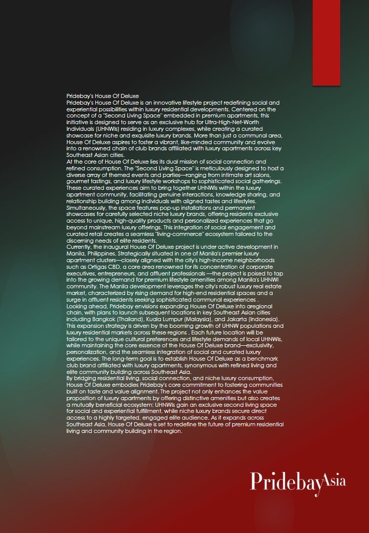 Pridebay’s House Of Deluxe Pridebay’s House Of Deluxe is an innovative lifestyle project redefining social and experiential possibilities within luxury residential developments. Centered on the concept of a "Second Living […]