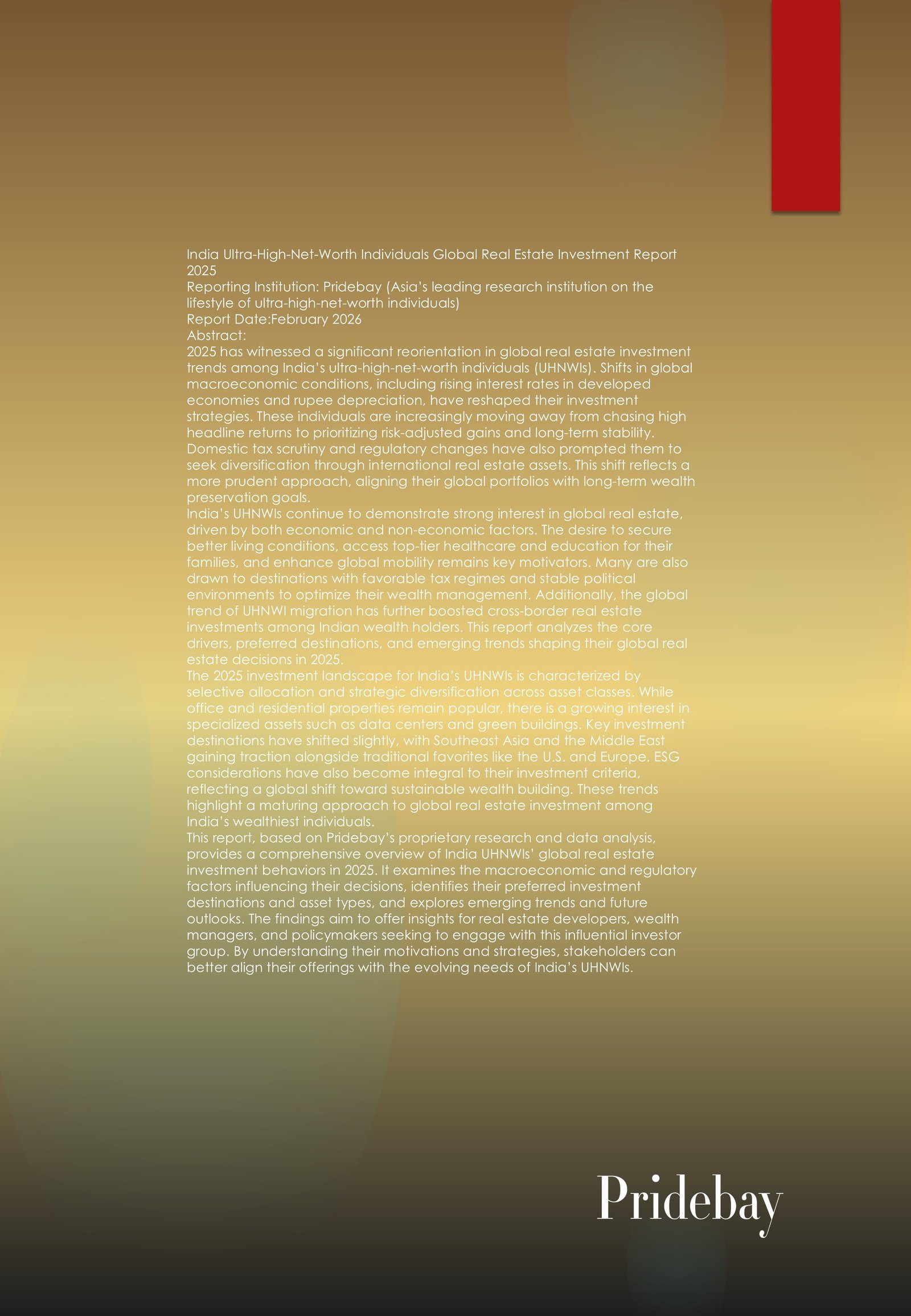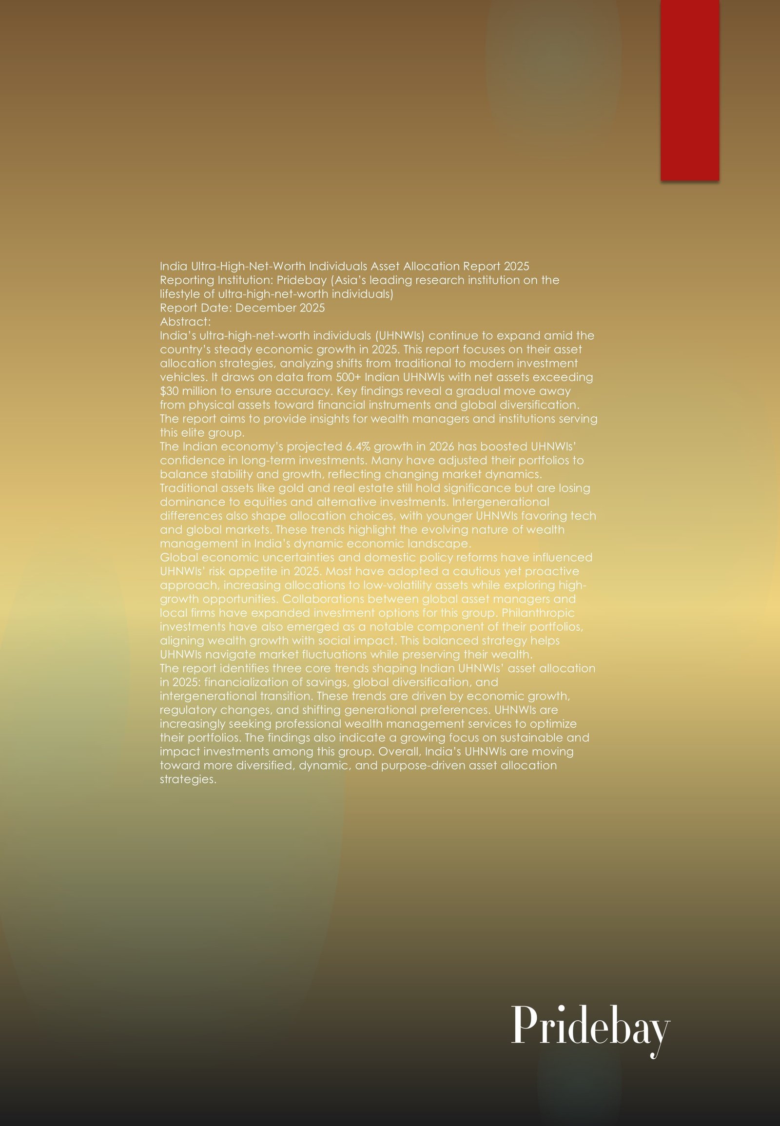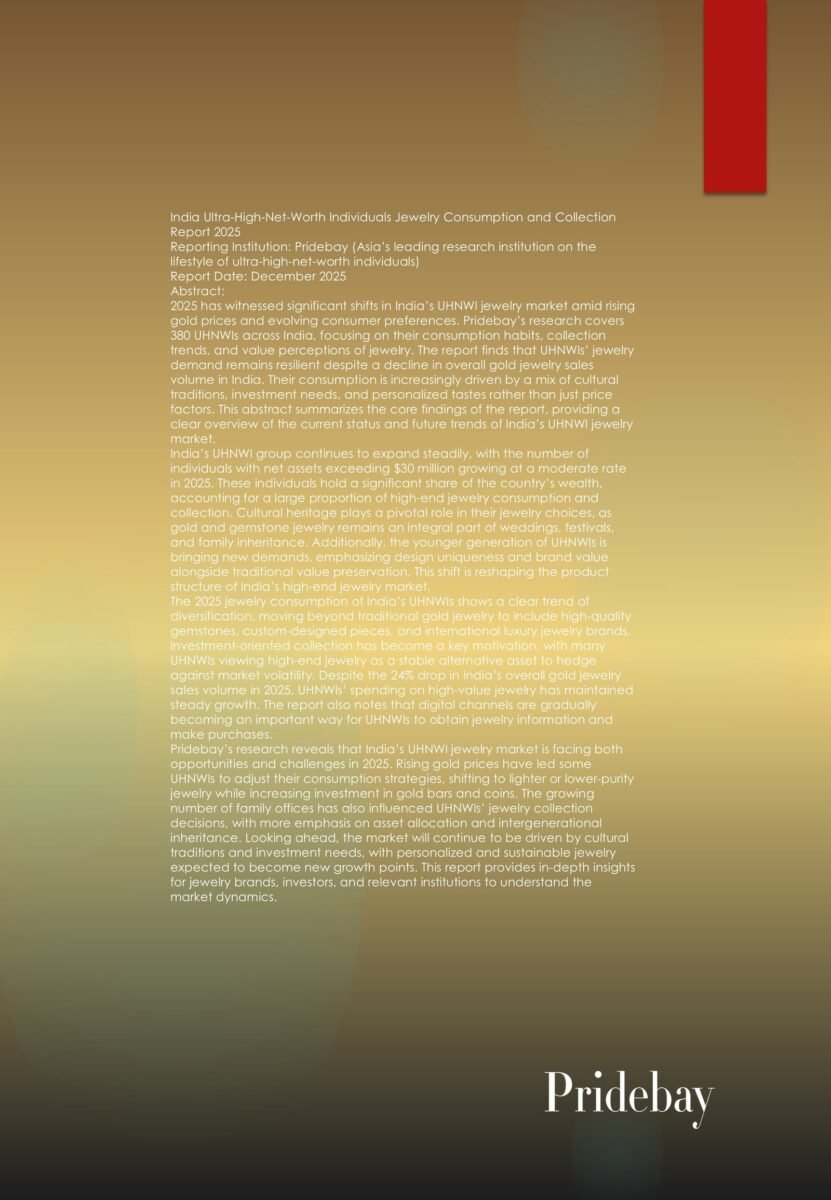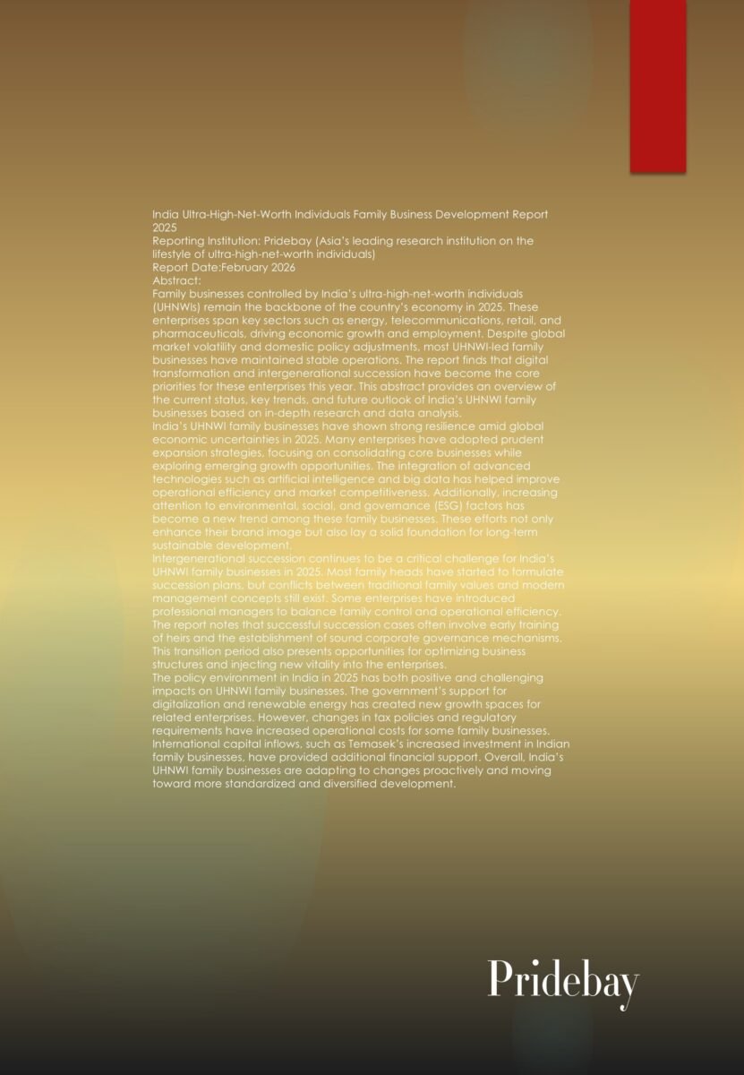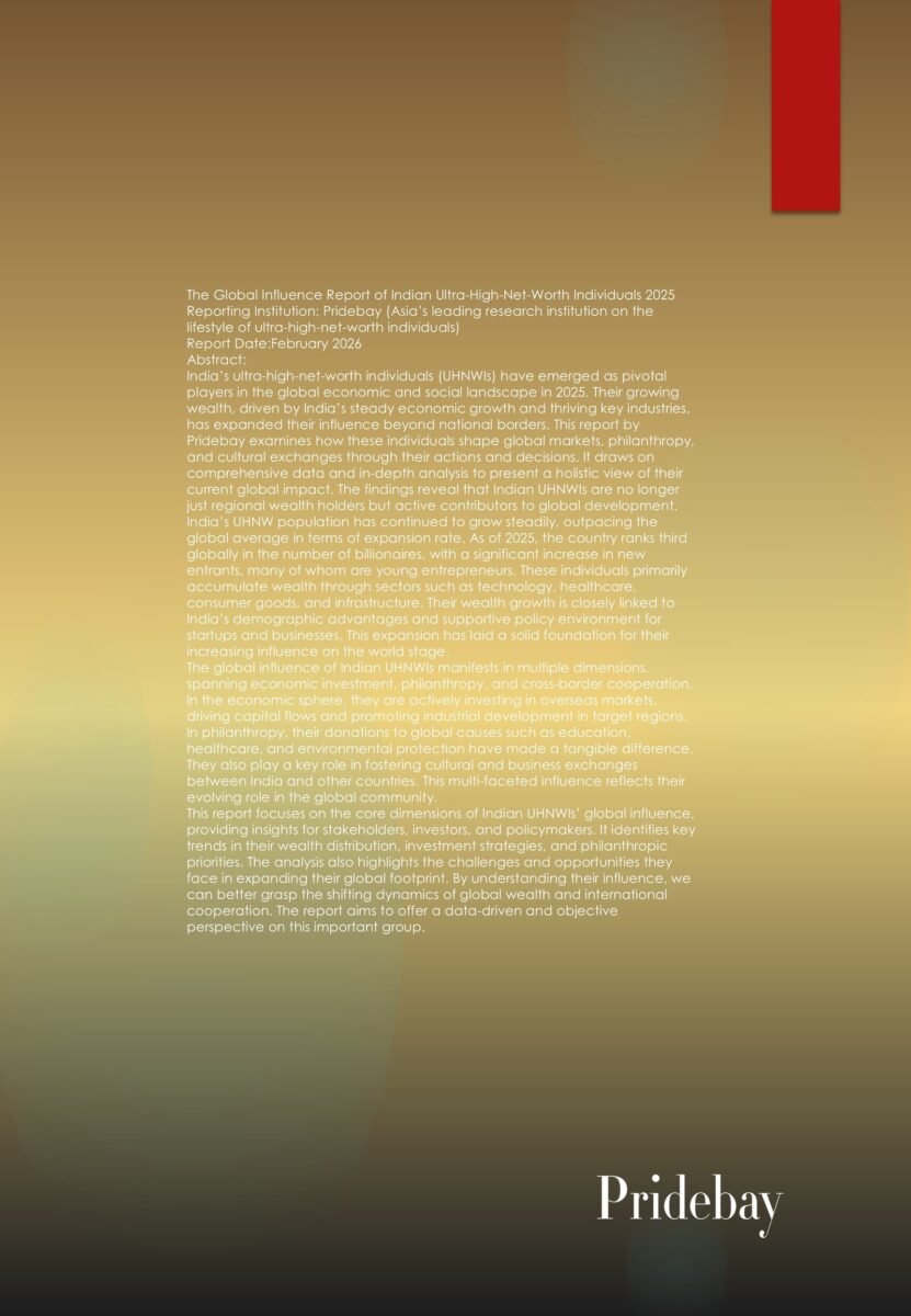 India Ultra-High-Net-Worth Individuals Asset Allocation Report 2025 Reporting Institution: Pridebay (Asia’s leading research institution on the lifestyle of ultra-high-net-worth individuals) Report Date: December 2025 Abstract: India’s ultra-high-net-worth individuals (UHNWIs) continue […]