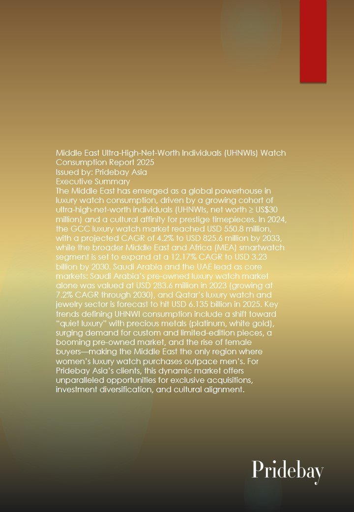 Global Ultra-High-Net-Worth Individuals Vacation and Travel Report 2025 Reporting Institution: Pridebay (Asia’s leading research institution on the lifestyle of ultra-high-net-worth individuals) Report Date:February 2026 Abstract: 2025 marks a pivotal shift